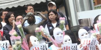 日本人が慰安婦像を足蹴にし、台湾民間団体が抗議