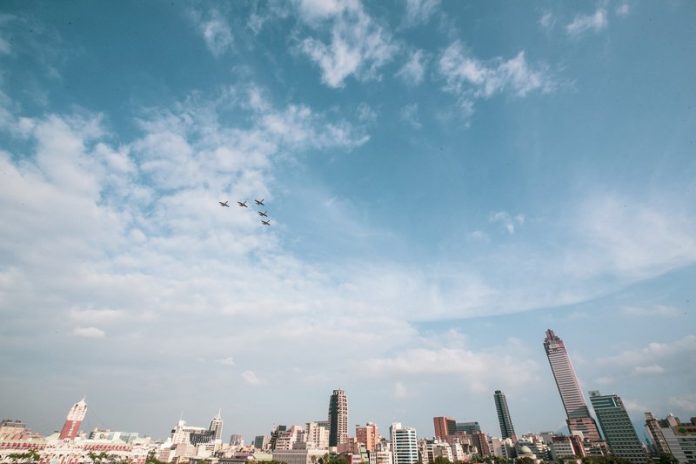雙十國慶將至,國防部今天(6日)上午出動UH-60M、S-70C、AH-64E、AH-1W等各型直升機,及象徵國機國造的IDF經國號戰機、AT-3教練機進行國慶前最後一次預演,各式機型通過總統府上空,吸引不少軍事迷卡位搶拍,國慶當天雷虎小組將施放彩煙。