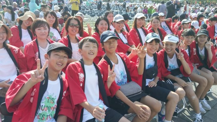 國慶大會陸空表演驚豔 日僑學校為東奧來讚聲。(陳國維 攝)