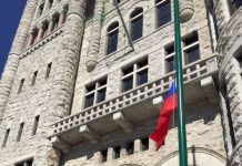 蔡英文總統:『(原音)在國慶日的這一天,這塊土地上所有的人民,都團結在自由民主的旗幟下,樂觀的面對未來,堅定克服挑戰。』
