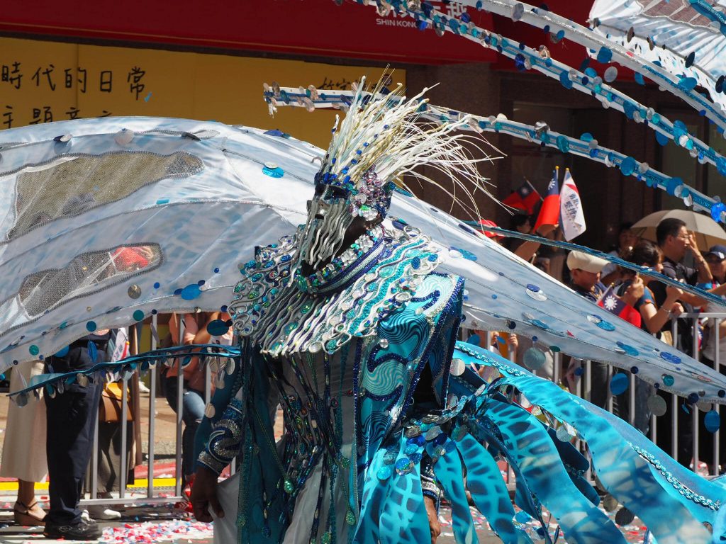 不只超過100名的台灣英雄接受歡呼,今年也首次邀請約300位友邦國家留學生及聖露西亞表演團一同參與,友邦聖露西亞表演團更從國內空運來台3輛造型獨特的人力花車,讓在「英雄谷」觀賞的民眾,手機、相機按不停。