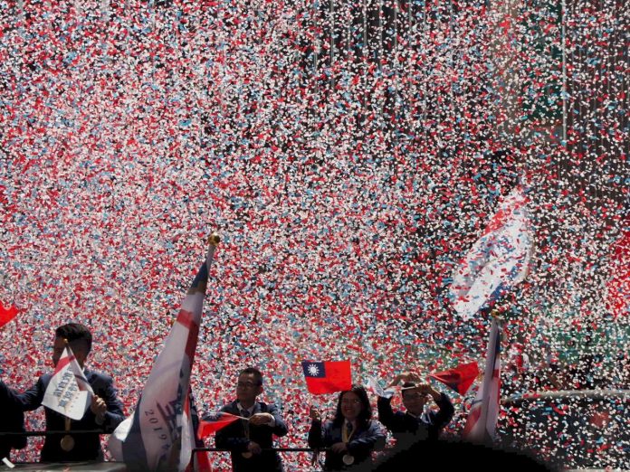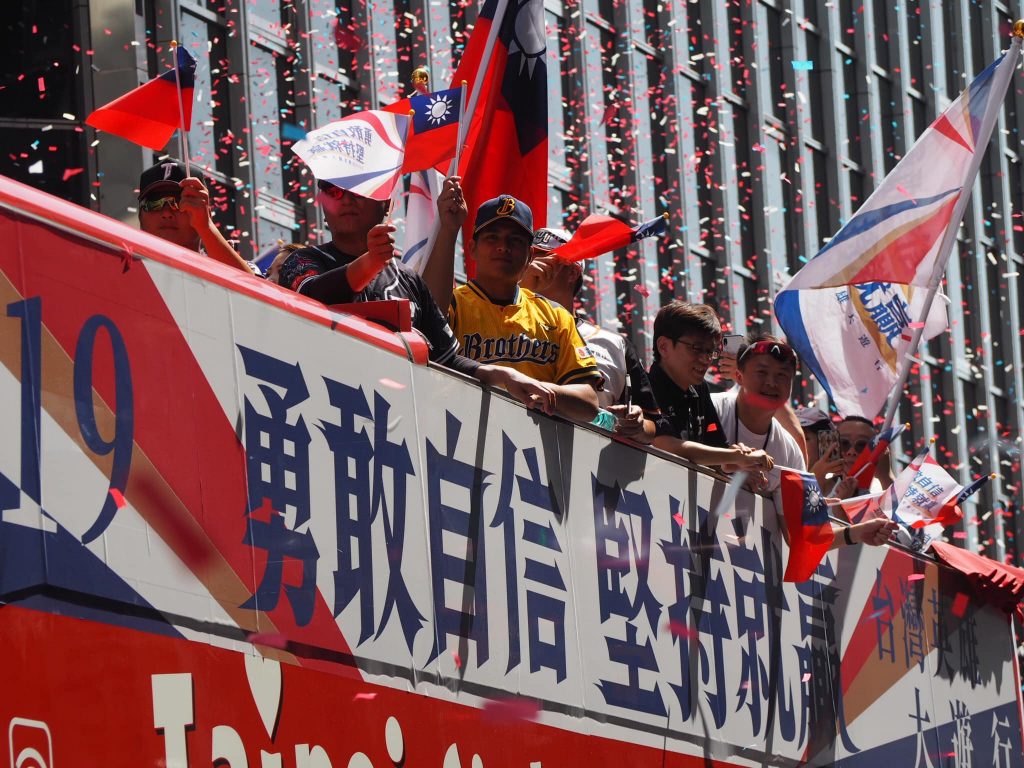 文總表示,今年遊行車隊規模比去年還大,希望結合國慶的感動凝聚國人對這些台灣英雄的敬意,並祝福他們在下一次的挑戰能有更好的成績。