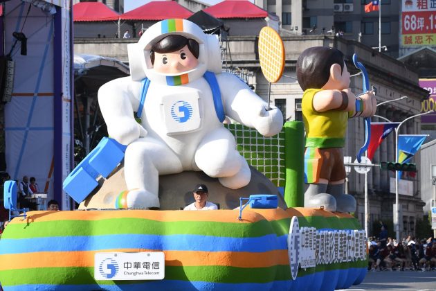 Beim Abendbankett zum Nationalfeiertag hat ein Luftballonkünstler eine Figur von Präsidentin Tsai Ing-wen aus Luftballons hergestellt.
