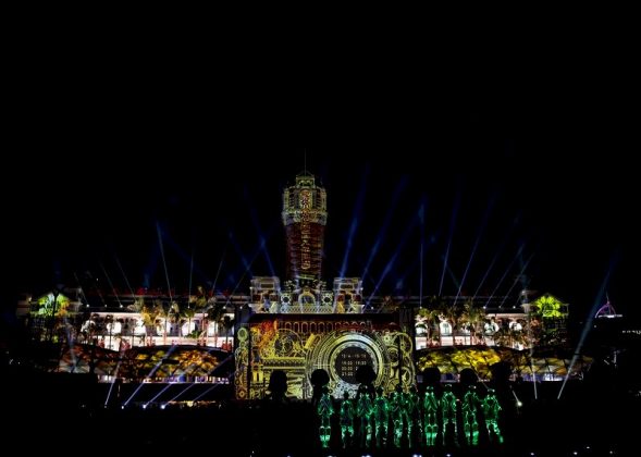 The Presidential Office building is decorated for National Day. (Photo Courtesy Presidential Office)