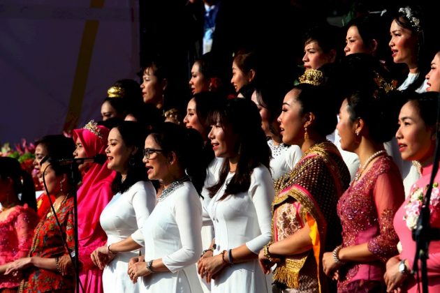 This patriotic pair stops to take a selfie outside the grounds where the National Day ceremony is taking place.