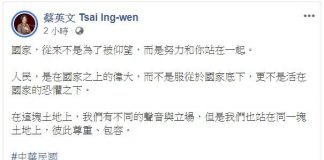 Presiden Tsai Unggah Artikel di FB Untuk Menyambut Hari Nasional