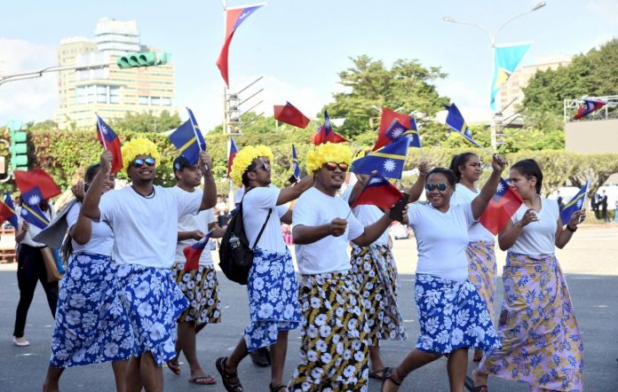 中華民国と国交関係のある国々からの留学生も祝賀パレードに参加。