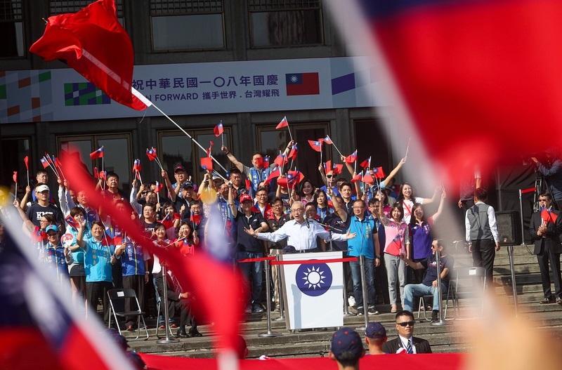 午後2時、国立国父紀念館の前で民間団体による双十国慶節祝賀大会が開かれた。(写真:CNA)