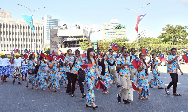 総統府前で行われた祝賀パレードでは、中華民国と国交関係のある国々からの留学生らや在台日本人などが参加。日本から駆けつけて来た超党派国会議員連盟「日華議員懇談会」のメンバーも祝賀パレードに初めて参加した。(写真:CNA)