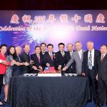 駐星代表處舉辦「中華民國108年雙十國慶酒會」,駐星代表梁國新(右7)致詞後和與會貴賓共同切生日蛋糕。(中央社)駐新加坡代表處今天(10日)舉辦「中華民國108年雙十國慶酒會」,駐星代表梁國新表示,中華民國身為成熟民主國家,願以人道援助、創新科技、農業、文化等多元暖實力和軟實力貢獻國際。駐新加坡台北代表處今天中午在香格里拉大酒店盛大舉行「中華民國108年雙十國慶酒會」,新加坡各...