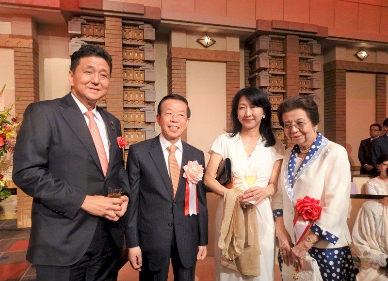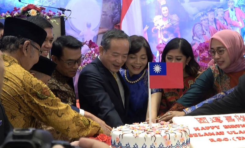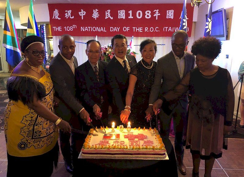 宏都拉斯大使Virginia Parades Trapero、韓國會議員趙慶泰和俞承希(左起)與駐韓代表唐殿文夫婦7日一起切慶生蛋糕,為中華民國慶生。圖右1為韓國前駐聯合國代表、現峨山政策研究院理事長韓昇洲。(圖:中央社)